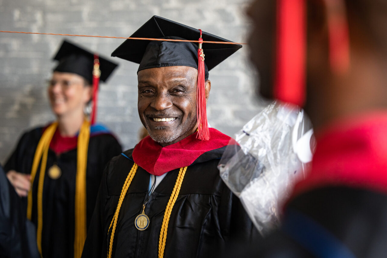 The group of 24 men received Master of Arts degrees in either Restorative Justice Ministries or Christian Ministries as part of North Park’s unique SRA program, in which free and incarcerated students study and work together toward the four-year degree. The program includes male students incarcerated at Stateville and female students at Logan Correctional Center.